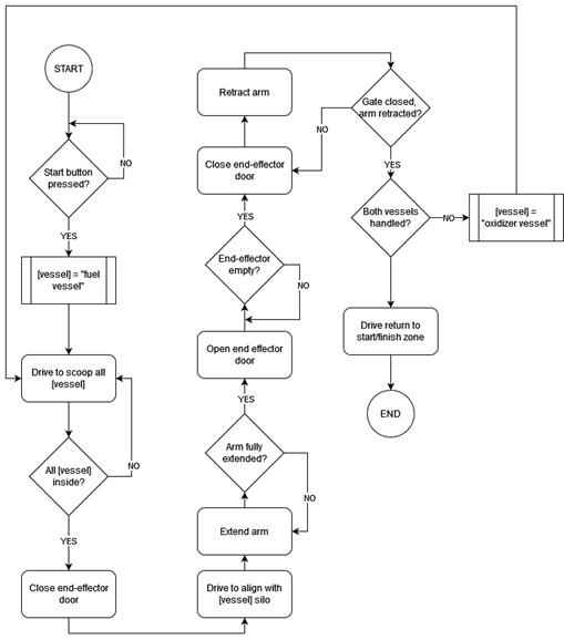 The Warman Design & Build Challenge 2023 sets the following premise. The Gondwanans, inhabitants of a small planet in the Milky Way, require assistance with the safe handling of their rocket fuel and oxidizer storage vessels. Earth engineers are requested to design a system to collect the storage vessels from their designated drop zones and deposit them into the appropriate storage silos.